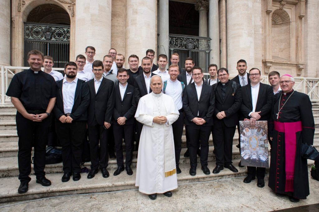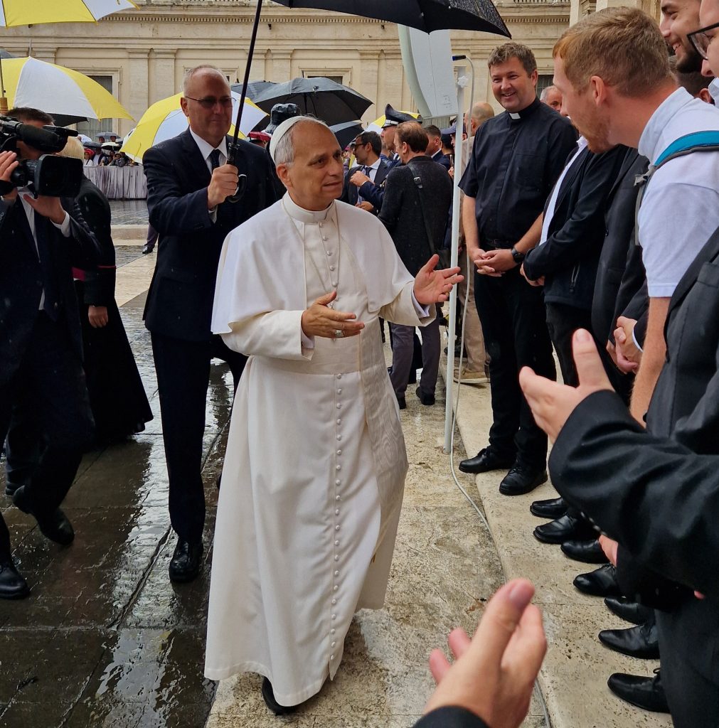 V sredo smo se odpravili v Vatikan, kjer smo imeli čast in privilegij prisostvovati avdienci papeža Leona XIV. Papež je poudaril pomen molitve rožnega venca in svetoval, naj v oktobru vsak dan darujemo molitev svetega rožnega venca za mir v svetu. Po avdienci smo se imeli možnost tudi osebno srečati s svetim očetom in se z njim skupinsko fotografirati. Papež Leon nam je na osebnem srečanju povedal, da je za dobro formacijo treba stremeti k svetemu in zdravemu življenju. Hvaležni smo za ta privilegij in molimo za svetega očeta.