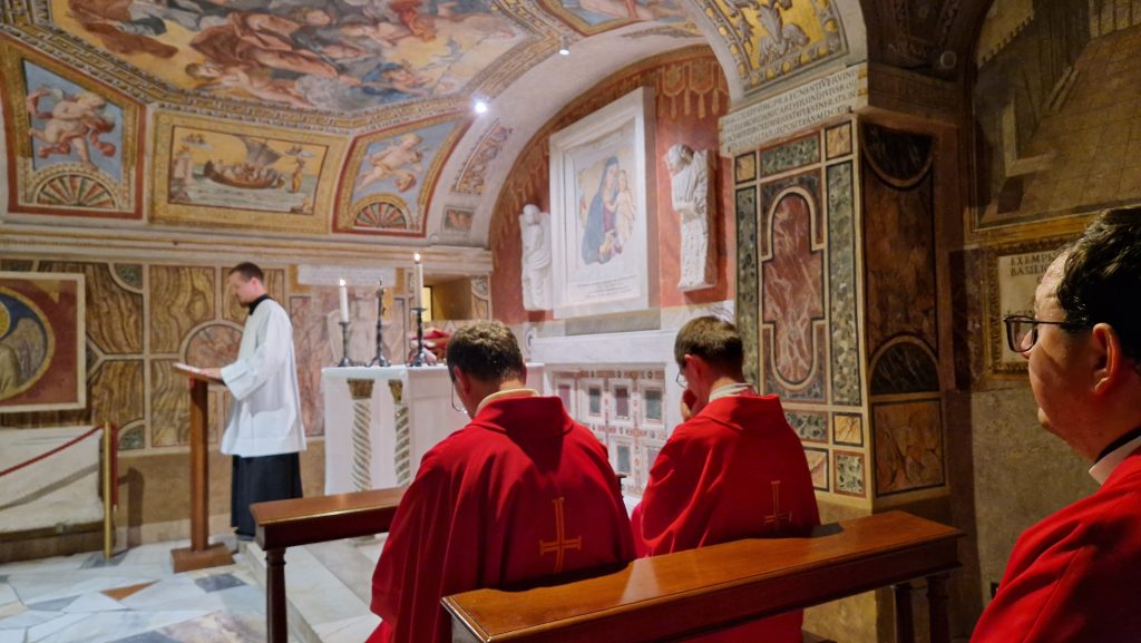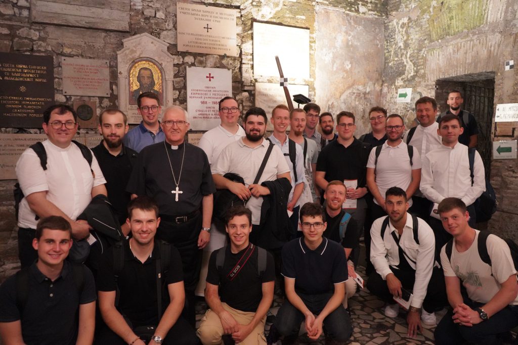 V ponedeljek smo se odpravili v center Rima in tam romali po različnih bazilikah. Zapeljali smo se tudi do bazilike sv. Pavla in v Tre fontane, kjer smo spoznali življenje in delo trapistov, ki tam delujejo. Naslednji dan smo se ustavili in molili na grobu svetega Cirila v baziliki svetega Klemna. Sledil je obisk rimskega semenišča, čigar rektor, pomožni rimski škof, msgr. Michele di Tolve, nas je zelo lepo sprejel. Razkazal nam je semenišče in nam postregel okusno kosilo. Sledilo je romanje v baziliko Maria Maggiore, v kateri smo lahko molili na grobu pokojnega papeža Frančiška.