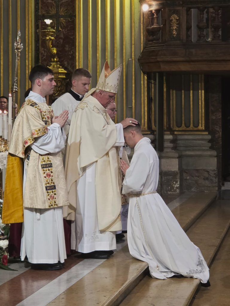 Dvanajstdnevno bivanje v Rimu smo zaključili z udeležbo na diakonskem posvečenju slovenskega bogoslovca na študiju v Rimu, Gregorja Antona Capudra. Potekalo je v cerkvi sv. Ignacija v središču Rima popoldan ob 16. uri. Zakrament mu je podelil ljubljanski nadškof Stanislav Zore, ki je tudi njegov domači škof. Ob ganljivosti dogajanja samega nas je prevzela tudi lepota cerkve, saj je okolje z baročno izdelanostjo podprlo skrivnostnost in veličastnost trenutka, ko je Sveti Duh preobrazil Gregorja in ga naredil za diakona. Romanje v Rim se je končalo z nočno vožnjo proti Sloveniji.