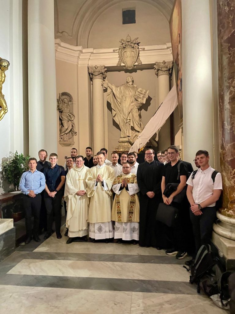 V nedeljo, 21. septembra 2025, smo se po sveti maši ob 7.uri z ljubljanskim nadškofom, msgr. Stanislavom Zoretom OFM, z avtobusom odpravili duhovne vaje in romanje v Rim. V slovenski papeški zavod Slovenik smo prispeli v času večerje, po večerji smo se še malo družili in se odpravili spat.